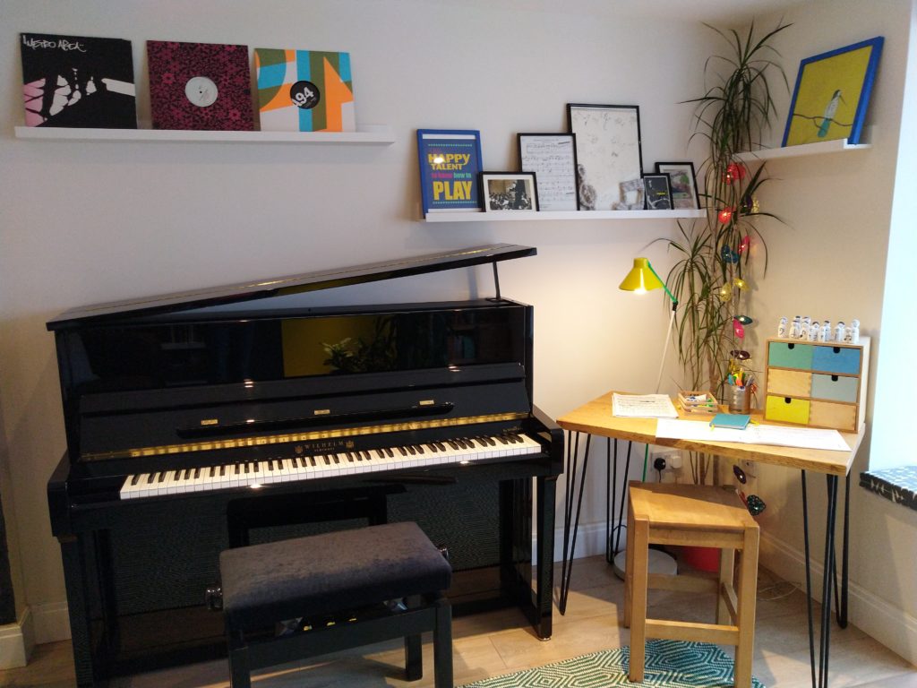 There is lots of space for: the ever-growing games and resources I use; a blackboard; a table (no more wobbly manuscript paper on knees); loads of seating for impromptu concerts (and early arrivals – or when I’m running late ?) plus a seriously beautiful piano ❤️❤️ which has been named by my children The Black Pearl ??