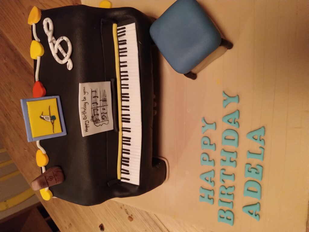 My family and friends organised this amazing surprise birthday cake for me this week…. I love it so much I don’t think I can ever cut into it! If you come to me for lessons you will recognise a few things, other than just the piano – like the bird picture and the metronome and the heart lights. The tiny music is even Happy Birthday in miniature!