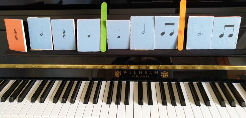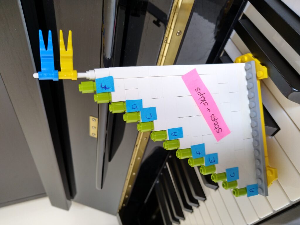 Piano lessons are back in full swing! Straight back into it for children’s lessons this week with lots of games and activities to pull everything we’ve learnt previously about notes and rhythms from our slightly locked-down, foggy brains, including scrabble letter races up and down the keyboard; pulling surprise objects out of a lucky dip bag and playing what comes out; making caterpillar rhythms; paying matching games; stepping and skipping up lego steps, plus lots of imaginative compositions, duets, clapping, tapping and generally having a lovely time.